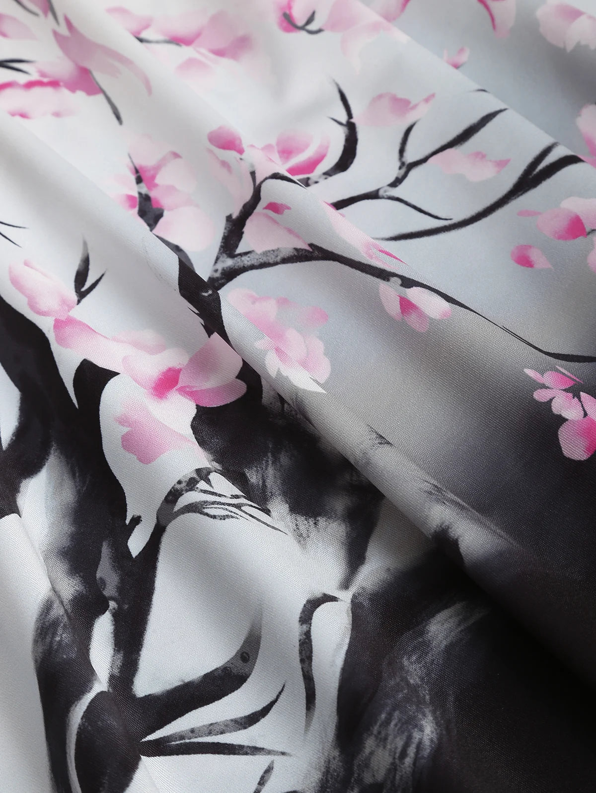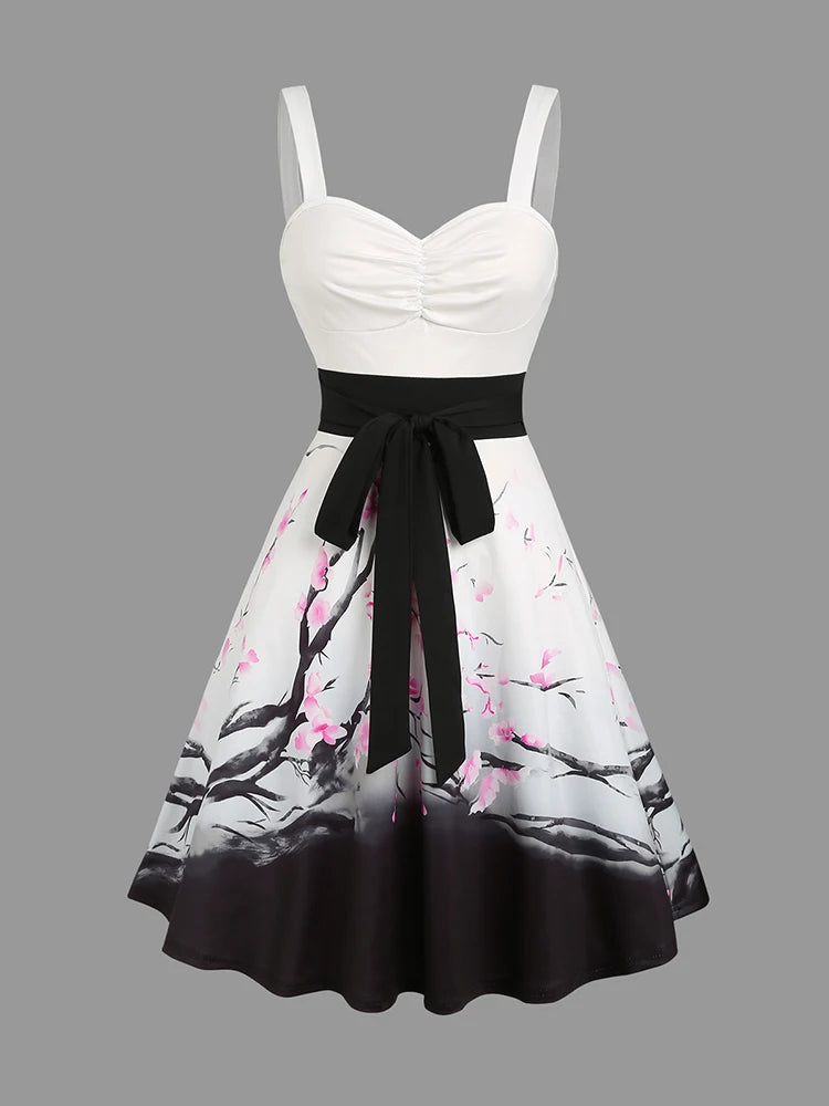 Women Mini Dresses Sweetheart Neck Plum Blossom Print Ruched Bust Tank Belt Summer Dress Elegant Sleeveless Dress Vestidos